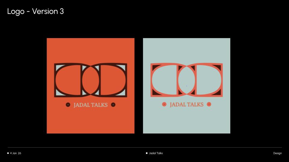 Jadal Talks is branding identity developed for a public dialogue platform, inspired by the logic of the Venn diagram. The visual system emphasizes overlap, exchange, and shared space, balancing clarity and expression to support talks, publications, and event materials across digital and physical formats.